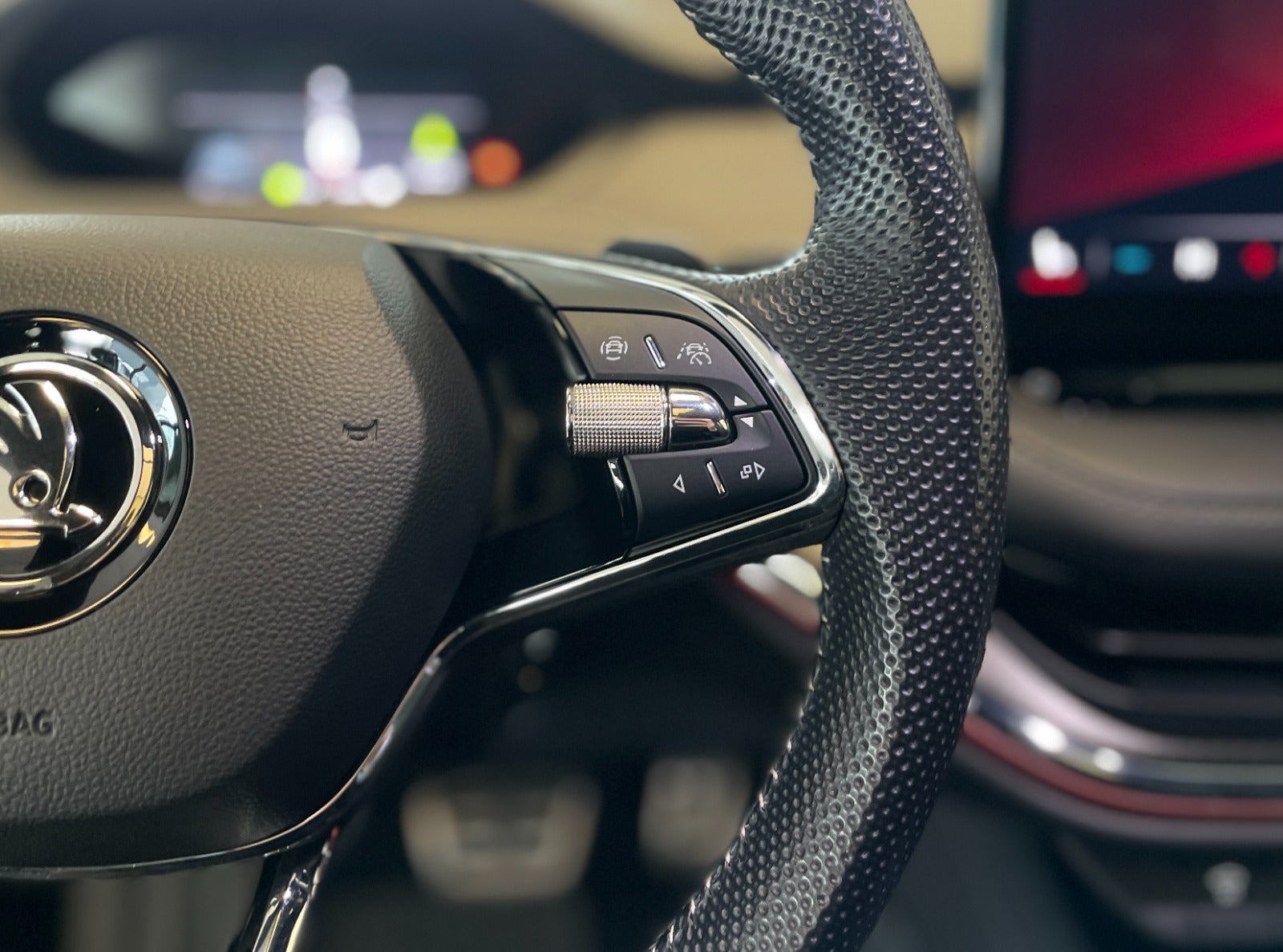 kørecomputer, digitalt cockpit, bagagerumsdækken, multifunktionsrat, læderrat, kunstlæderindtræk, sportssæder, højdejust. førersæde, el indst. førersæde m. memory, mørk loftbeklædning, ambiente belysning, alufælge, 21" alufælge, glastag, el-klapbare sidespejle m/varme, led kørelys, fuld led forlygter, mørktonede ruder i bag, automatgear, varme i rat, fuldaut. klima, 3 zone klima, fjernb. centrallås, nøglefri tænding, fartpilot, adaptiv fartpilot, udv. temp. måler, sædevarme, 4x el-ruder, elektrisk parkeringsbremse, trådløs mobilopladning, navigation, håndfrit til mobil, musikstreaming via bluetooth, android auto, apple carplay, usb-c tilslutning, regnsensor, bakkamera, parkeringssensor (bag), parkeringssensor (for), skiltegenkendelse, træthedsregistrering, isofix, fjernlysassistent, automatisk lys, 7 airbags, vognbaneassistent, automatisk nødbremsesystem, blindvinkelsassistent, nøglefri adgang